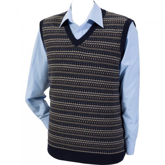 Sous une veste ou par-dessus une chemise, les débardeurs sont super pratiques et indispensables pour la mi-saison et l’hiver ! Ce superbe DÉBARDEUR À BORDS-CÔTES tire son élégance de son motif travaillé dans les tons beige et gris. Sa matière luxueuse en 80% laine et 20% polyamide le rend merveilleusement doux et chaud, mais également indéformable sur le long terme. Finitions très soignées : encolure en V, emmanchures et base en bords-côtes élastiqués. Dos uni bleu marine. Un classique indémodable en top-qualité qui se porte facilement avec tout !