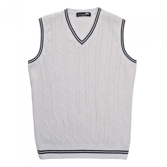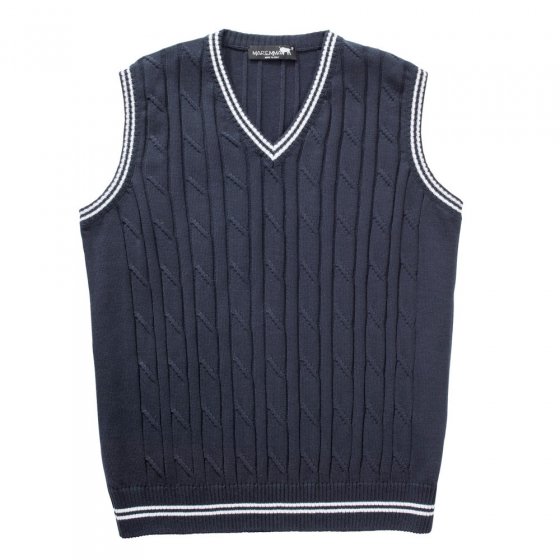 Einfach unentbehrlich für den Frühling und kühlere Sommertage ist der maritim inspirierte Pullunder aus hochwertigem Baumwoll-Mix! Zeitlos-schön wirkt das traditionelle Design mit Zopfmotiven vorn und breiten Rippen hinten. Die erstklassige Materialqualität ist weich, atmungsfähig und passt sich der Jahreszeit an. Sie besitzt hohe Formtreue, ist robust und pflegeleicht zugleich. Ein kombistarker Begleiter mit höchstem Tragegenuss!• Sehr gepflegte Verarbeitung mit dauerelastischen Rippenabschlüssen mit Kontraststreifen an V-Ausschnitt, Armausschnitt und Hüfte. 50 % Baumwolle, 50 % Polyacryl, maschinenwaschbar