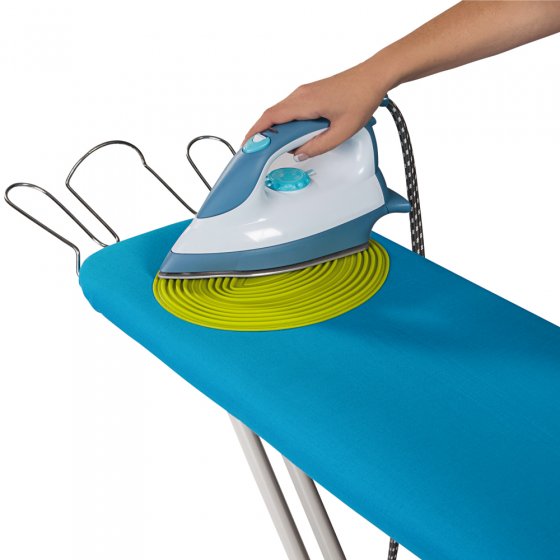 Notre promesse: cette HOUSSE DE REPASSAGE AVEC REVÊTEMENT EN SILICONE universelle fera du repassage une vraie partie de plaisir. Son rembourrage (épaisseur: 5 mm) aide le fer à repasser à glisser plus facilement et plus confortablement sur le linge. Son matelas de mousse est recouvert de coton microporeux qui absorbe parfaitement l’humidité des fers à vapeur pour un résultat incroyable en un tour de main. Si vous souhaitez vous accorder une petite pause, vous pouvez tout simplementposer le fer sur le grand emplacement rond en silicone intégré dans la housse qui résiste à des températures atteignant 250°C. Dim. env. 45 x 130 cm. Convient à toutes les tables à repasser standard : il vous suffit de l’enfiler et de fixer l’élastique sous la table à l’aide du clip. Housse 100% coton, lavable en machine (jusqu’à 40°C). Un accessoire pratique pour un repassage sans (faux) pli !