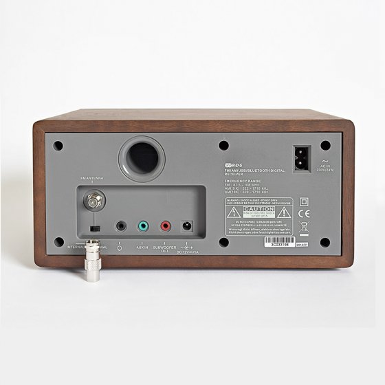 Qu'attendez-vous d'une radio ? Qu'elle offre un son clair, qu'elle vous donne l'heure - si possible avec alarme - et qu'elle soit facile à utiliser ? Cette RADIO RDS AVEC BLUETOOTH répond facilement à ces exigences et offre même bien plus encore ! Et en plus elle est incroyablement belle avec son panneau en verre argenté sur le devant et son cadre en bois teinté noisette foncé. Le grand écran LCD affiche l'heure et la fréquence de l'émetteur mais également le nom de la station ainsi que d'autres informations grâce à transmission de signal RDS. Un port USB permet de diffuser des données musicales numériques (MP3 et MWA). Cette fonction est également proposée sans fil par Bluetooth : vous pourrez ainsi utiliser l'appareil comme une radio mais aussi comme un ampli réglable par télécommande ! Le volume est assuré par une enceinte large bande de 7 watts optimisée pour un son dynamique. Fonctionne sur 230 V. Dim. (L x l x h) : env. 19 x 24 x 11 cm, poids env. 2,9 kg. Apportez de la musique à table, servie dans une radio élégante et assaisonnée de technologie ultra moderne !