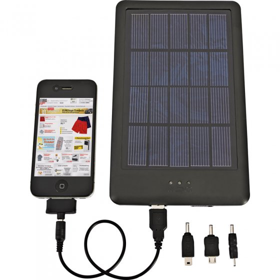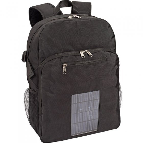 Ceux qui aiment la nature, que ce soit en randonnée ou en vélo, doivent en principe savoir renoncer à l'électricité. Que faire alors si une fois au sommet d'une montagne ou devant un panorama, votre appareil photo est à plat ? Avec ce SAC À DOS SOLAIRE en nylon robuste (900 D) vous aurez toujours de "l'énergie" sur le dos : dans son compartiment extérieur (avec fenêtre transparente) se trouve un panneau solaire puissant et amovible. Grâce à 4 adaptateurs différents, vous pourrez recharger votre portable, votre lecteur MP3 ou votre appareil photo à tout moment . Dim. du sac à dos : env. 6 x 34 x 41 cm. Avec bretelles réglables. En avant toute, avec toute la puissance qu'il faut !