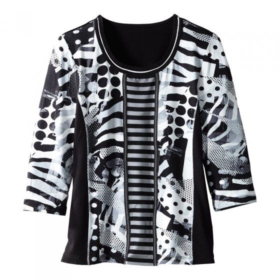 Le mesh a bien des avantages : ce T-SHIRT À COL ROND met votre silhouette en valeur grâce aux empiècements mobiles en noir et blanc ! Avec surpiqûres décoratives contrastées sur le devant, manches ¾ et encolure ronde. 95 % viscose, 5 % élasthanne, Lavage machine pour linge délicat.