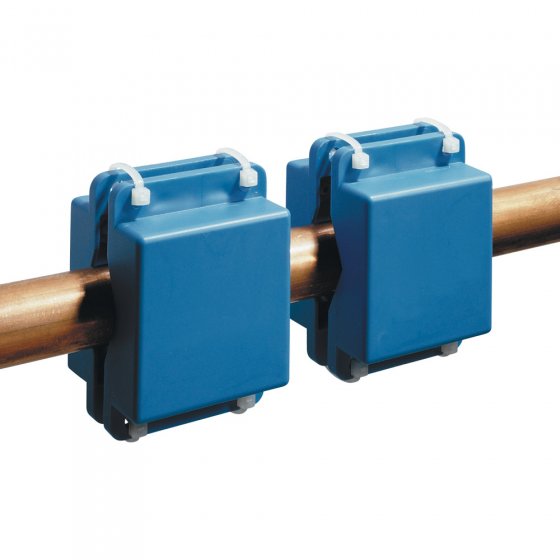 Le GÉNÉRATEUR DE CHAMP MAGNÉTIQUE POUR TUYAUTERIE EN LOT DE 2 est un système efficace et éprouvé pour prévenir la formation de tartre ! Lorsque l’eau traverse le champ magnétique, les structures calcaires se cristallisent et ne peuvent plus aussi facilement se déposer sur la surface des tuyaux. Les deux générateurs de champ magnétique d’une puissance de 1.200 gauss chacun s’adaptent à tous les types de tuyaux. Pas besoin d’outils pour l’installation : placez-les autour de la conduite d’eau principale, attachez-les au moyen de serre-câbles et les aimants déploient leur action, sans substances chimiques et sans frais d’exploitation courants ! Dimensions de chaque exemplaire (l x H x P) : ca. 5 x 7 x 4,3 cm ; poids : env. 120 g chaque. De nombreux clients ont déjà été convaincus de la force des aimants – faites-en l’essai, vous aussi !