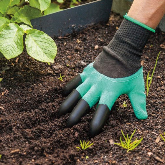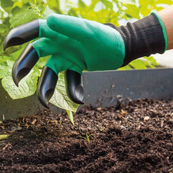 C'est si simple de jardiner : avec les innovants GANTS DE JARDINAGE AVEC GRIFFES, vous pouvez creuser, planter ou arracher les mauvaises herbes plus vite, plus facilement et plus exactement que jamais ! Le gant droit est muni de 4 griffes en plastique ABS robuste qui permettent de travailler avec plus de précision et de doigté qu'avec un râteau ou une bêche. En même temps, le matériau élastique et robuste protège vos doigts contre la saleté, l'humidité et les épines. Taille unique. Longueur : env. 26 cm, longueur des griffes : env. 7 cm. Montrez les griffes aux mauvaises herbes !