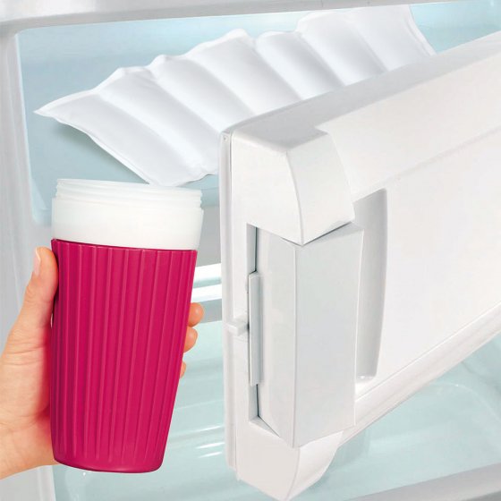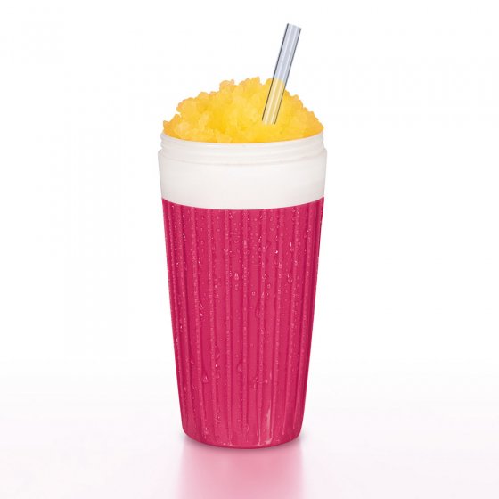 Avec ce GOBELET À GRANITÉ vous pouvez désormais à tout moment vous offrir depuis chez vous un délicieux granité, la boisson culte des années 90. Placez dans le congélateur pendant quelques heures ce gobelet souple et flexible muni d'une paroi rafraîchissante ; sortez-le puis remplissez-le au choix de jus de fruit, de soda ou autre, refermez-le avec son couvercle et pressez le gobelet. En un rien de temps, votre boisson se transformera en un délicieux granité que vous pourrez déguster avec la paille-cuillère. Capacité env. 300 ml. Dim. env. Ø 9 x h 20 cm. Accordez-vous ce plaisir glacé chez vous !