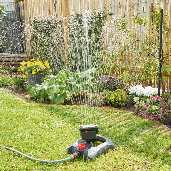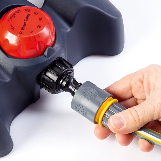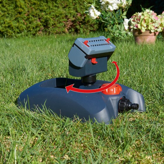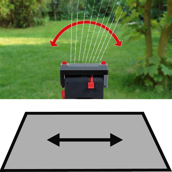 Slepen met gieters hoeft niet meer: bewateringssystemen zoals de GROTE VIERKANTE SPROEIER MET TIMER houden het gazon groen en de bloemen fris. In tegenstelling tot conventionele cirkelvormige sproeiersystemen bereikt deze vierkante sproeier wél de hoeken van de tuin: de roterende sproeikop zorgt voor besproeiing tot in elke hoek! Dankzij een bereik van max. 21 m en een besproeiingsbreedte van max. 19 m kan hij een oppervlak tot 400 m2 besproeien. Veel gazonsproeiers kunnen dit niet. De timer maakt automatische uitschakeling mogelijk (1-120 min.), de hoeveelheid water kan worden geregeld met een draaischakelaar. Afmetingen (l x b x h): ca. 32 x 21 x 24 cm. Slangaansluiting: ¾’’. Houd uw gazon en bloemen mooi!