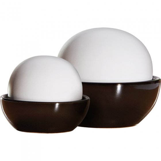 En hiver, le chauffage absorbe l’humidité de l’air, on ouvre moins souvent les fenêtres, avec pour conséquences un dessèchement des muqueuses des voies respiratoires supérieures et une vulnérabilité accrue aux refroidissements. Pour éviter cela, utilisez notre HUMIDIFICATEURS D'AIR FAITS MAIN : les billes en terre cuite absorbent l’eau pour la restituer ensuite petit à petit dans l’air. La matière innovante de ses billes augmente la surface d’évaporation grâce à l’action des forces capillaires. Ø : env. 12 cm (grand modèle) ou 9 cm (petit modèle). Contenance : 200 ml ou 50 ml. Posez ce joli humidificateur d’air sur une étagère, sur l’appui de fenêtre ou la table du salon !