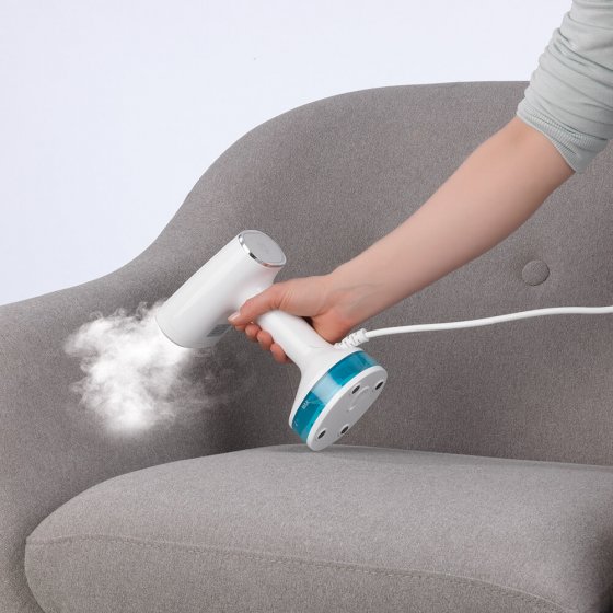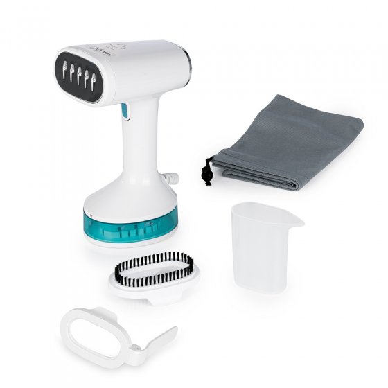 Met de handige HANDSTOMER verwijdert u binnen enkele minuten vervelende geurtjes, bacteriën en kreukels uit kleding, bekleding en gordijnen. De ergonomische stomer reinigt, maakt glad en verfrist uw textiel met een krachtige continue stoom tot 22 g/min. Ook heel geschikt voor het verticaal stomen van gordijnen. Met de textielborstel-opzetstuk verwijdert u veilig vuil en pluisjes van uw kleding, ideaal voor op reis. Inclusief textiel- en kreukopzetstuk. Afmetingen (b x h x d): ca. 9 x 22 x 13 cm. Werkt op 220-240 V. 1200 W. Uw alleskunner als het gaat om hygiënische schone resultaten en een verzorgde look.