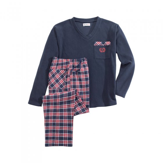 Waarschijnlijk de behaaglijkste manier om een pyjama te dragen! Deze HEREN-FLEECEPYJAMA bestaat uit een shirt van 100% polyester-fleece en een broek van 100% katoen-flanel: samen omhullen ze uw lichaam met streelzachte warmte en zorgen ze voor een heerlijk gevoel op de huid. Het shirt met geborduurde borstzak, geruit textielen beleg en zijsplitten is net zo heerlijk comfortabel als de broek met zacht geruwde binnenkant, elastische band met koord, 2 zakken opzij en 1 achterzak. Beide delen zijn machinewasbaar. Ook ideaal als supercomfortabele homesuit!