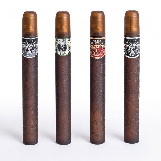 Cuba Brown: Alcohol Denat, Aqua, Parfum, Alpha-Isomethyl ionone, Citral, Citronellol, Coumarin, Eugenol, Evernia Prunastri (OAK MOSS) extract, Geraniol, Limonene, Linalool. Cuba Green: Alcohol Denat, Aqua, Parfum, Alpha-Isomethyl ionone, Benzyl Salicylate, Butylphenyl methylpropional, Citronellol, Eugenol, Geraniol, Isoeugenol, Limonene, Linalool. Cuba Black: Alcohol Denat, Aqua, Parfum, Alpha-Isomethyl ionone, Benzyl Salicylate, Butylphenyl methylpropional, Cinnamal, Citral, Citronellol, Coumarin, Eugenol, Evernia Prunastri (OAKK MOSS) extract Geraniol, Hexyl Cinnamal, Limonene, Linalool. Cuba Grey: Alcohol Denat, Aqua, Parfum, Butylphenyl methylpropional, Citral, Citronellol, Coumarin, Geraniol, Hydroxycitronellal, Limonene, Linalool.