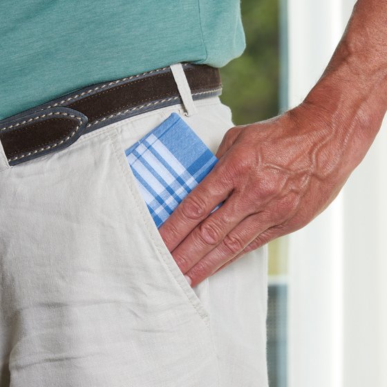 Wist u dat er 15 kg tissuepapier per persoon per jaar wordt verbruikt? Door het gebruik van stoffen zakdoeken kan dit verbruik aanzienlijk worden verminderd. De herbruikbare, discreet gedessineerde herenzakdoeken zijn gemaakt van 100% katoen en zijn dus heerlijk zacht. En ze zijn veel robuuster dan papieren wegwerpzakdoekjes. Geassorteerde kleuren: blauw, groen en bruin. Afmetingen per zakdoek (l x b): ca. 41 x 41 cm.