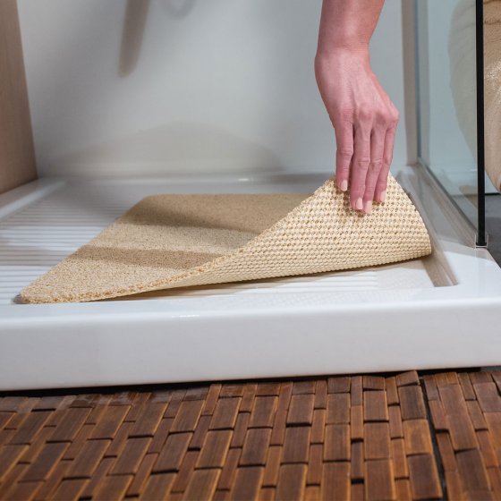 “Ich verwende die Duschmatte überhaupt nicht,Grund : im trockenen Zustand ist die Matte rutschfest aber sobald Wasser hinzu kommt ist man auf der Matte wie auf einer