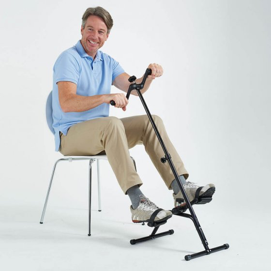 Aan sport doen voor de tv en tevens zorgen voor uw eigen welzijn: met deze praktische hometrainer 2-in-1 doet u iets voor uw gezondheid en uw conditie zonder dat u de deur uit hoeft. Gewoon de pedalen ronddraaien en starten maar! De hoogte van deze hometrainer is verstelbaar, zodat u zittend heel goed zowel uw arm- als uw beenspieren kunt trainen. Bijzonder praktisch: in vergelijking met gewone hometrainers is dit model uiterst ruimtebesparend op te bergen. Dankzij de zacht beklede antislipgrepen traint u veilig en effectief: u blijft in beweging en u houdt uw gezondheid op peil! Afmetingen van het basisdeel (in gemonteerde toestand l x b): 44 x 35 cm.