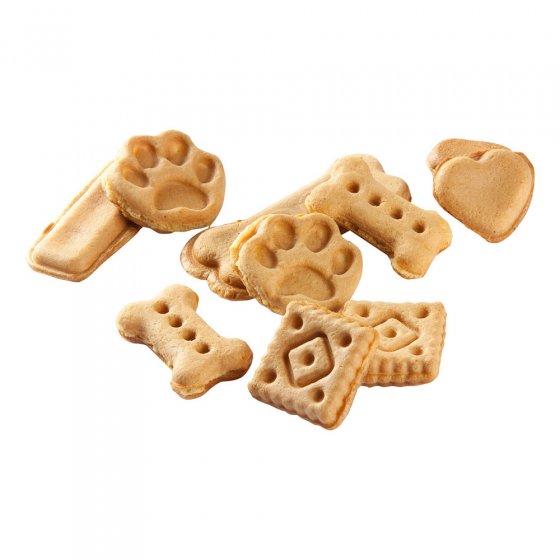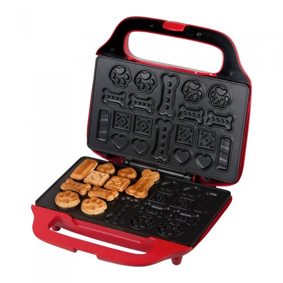 Als u uw hond wilt te belonen met traktaties tussendoor, zijn hondenkoekjes een goede keuze - maar niet de koekjes gemaakt voor mensen, want deze zijn vaak pure "vet mesters". Beter zijn zelfgemaakte hondenkoekjes: dit kan met de HONDENKOEKJES BAKKER. Snel en eenvoudig bakt u heerlijk gezonde hond snacks! Het apparaat werkt als een elektrisch wafelijzer: Alleen het deeg invullen en al ongeveer 10 minuten later kan u van de antikleef coating 20 smakelijk vormige hondenkoekjes nemen. De hondenkoekjes bakker heeft antislip voetjes en kan rechtop bewaard worden in de kast. Bediening via netaansluiting (230 V), Vermogen: 900 W. Afmetingen (L x B x H): ca. 28 x 26 x 10 cm. Het wordt geleverd met een receptenboekje met veel koekrecepten en zelfs honden opleiding tips inbegrepen. Tip: De honden koekjes bakker of zelfgemaakte hondenkoekjes zijn ook een heerlijk originele (kerst) cadeau voor gepassioneerde hondenbezitters!