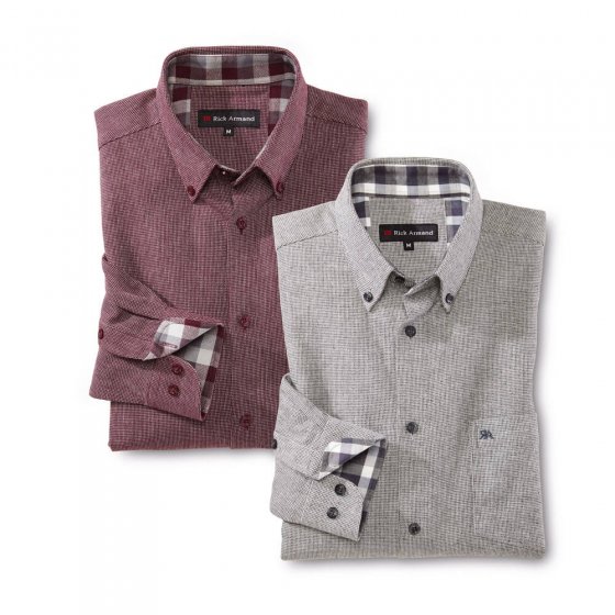 Het mooie aan dit HOOGWAARDIGE FLANELLEN OVERHEMD: het is elegant en tegelijkertijd heel comfortabel. Het fijngeweven micro-dessin in de stof heeft stijl en klasse; het geruite beleg aan de button-downkraag en de manchetten vormt een sportief accent. En men voelt zich in het 'Rick Armand'-overhemd met lange mouwen ook heel prettig: daarvoor zorgt het zacht geruwde flanel van 100% katoen. Het overhemd heeft een geborduurde borstzak, rugplooien en is machinewasbaar. Verstelbare manchetten, een afgeronde zoom en chique kleuren maken het plaatje compleet. Bestel beide overhemden in een voordeelset.