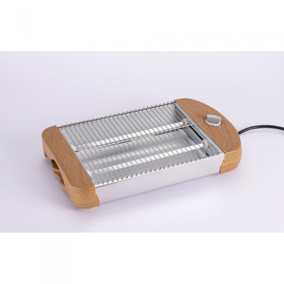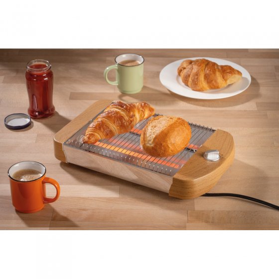 Verse baguettes, warme croissants of heerlijk geroosterd brood: met de HORIZONTALE FLAT TOASTER kun je alles wat niet in de broodrooster past knapperig maken en gemakkelijk bakken – zonder naar de oven te hoeven gaan. De gebakken producten worden voor je ogen knapperig en warm, net alsof ze vers uit de bakkerij komen. Twee verwarmingselementen voor gelijkmatig bruin bakken en een timer met 12 instelbare bruiningsniveaus om aan je smaakvoorkeuren te voldoen. Met uittrekbare kruimellade voor eenvoudig schoonmaken en automatische uitschakelfunctie. Afmetingen (B x H x D): ca. 21 x 7 x 36 cm. 230 V/ max. 600 W. Deze toaster is ideaal voor iedereen die van het leven wil genieten
