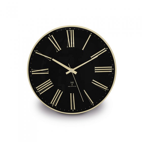 Une horloge murale avec des applications dorées ressemble à un bijou surdimensionné - elle confère à chaque pièce une atmosphère distinguée. Et comme la couleur "or" est particulièrement bien mise en valeur sur un fond sombre, l'HORLOGE MURALE RADIO "KENSINGTON" a un cadran noir. Les chiffres romains brillants s'y détachent avec un contraste magnifique. Comme il se doit pour une horloge murale de qualité, la "Kensington" n'émet pas de tic-tac gênant, mais fonctionne silencieusement. Le récepteur de signaux horaires DCF77 intégré garantit une précision absolue. Dimensions : Ø env. 30 cm, épaisseur du boîtier env. 5 cm. Fonctionne avec 1 pile AA (vendue séparément).