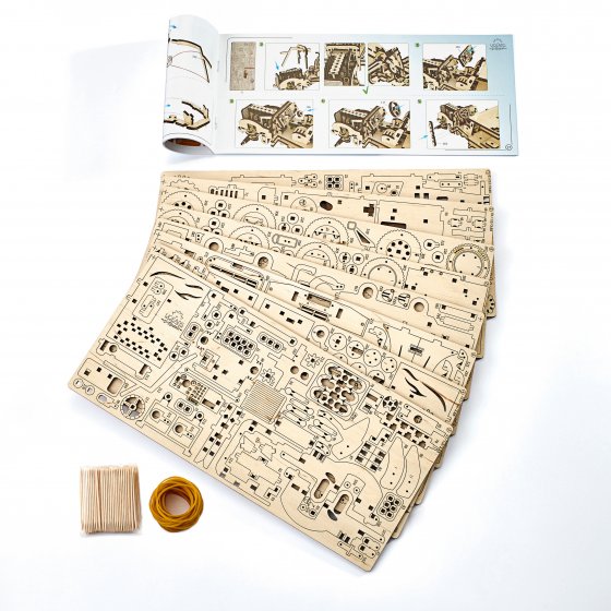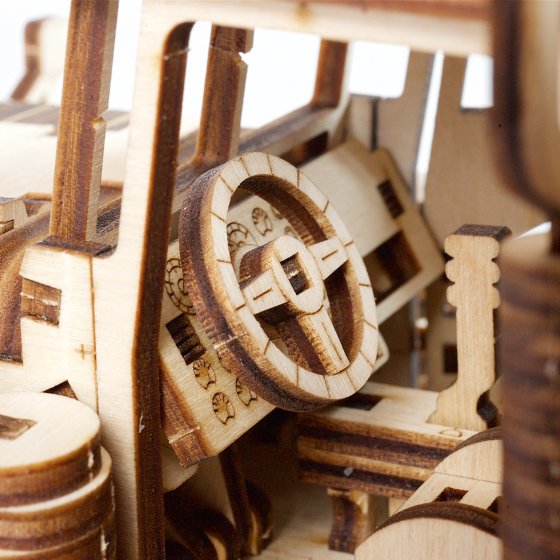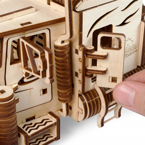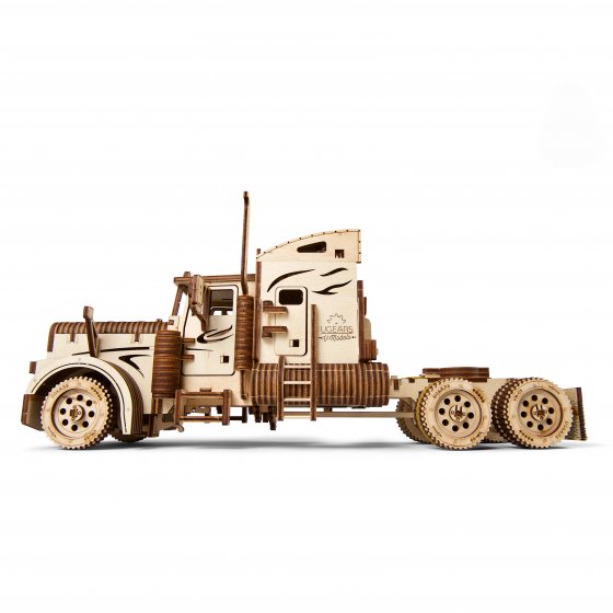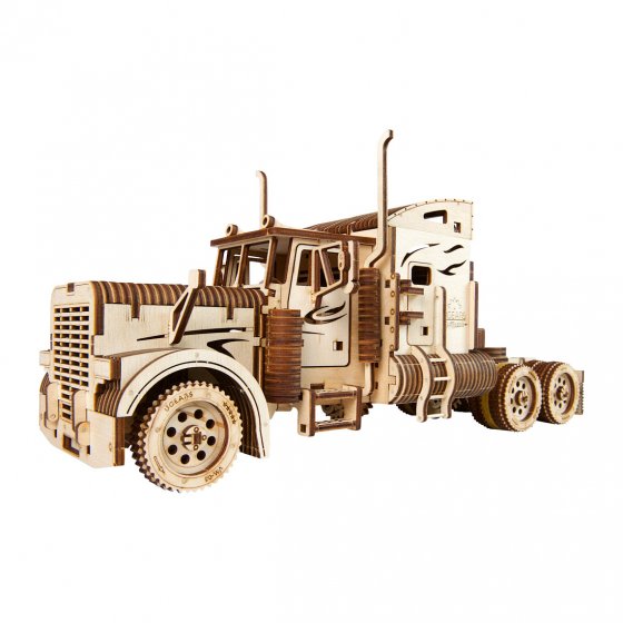 Begeleid door het dreunen van de dikke dubbele banden en het brommen van de big-blockmotor – zo trekken de Amerikaanse vrachtwagens over de highway. Koop nu zo'n gigant als model voor in huis: deze HOUTEN MODELVRACHTWAGEN (541 delen) is een tot in detail verwerkte nabootsing van de originele stalen vrachtwagen. Dankzij het vernuftige mechanisme is sturen en schakelen (vooruit/achteruit/vrijloop) mogelijk. De vrachtwagen kan door de rubberaandrijving over een afstand van ca. 5 m rijden. Wie niet houdt van half werk, bestelt ook de HOUTEN MODEL-AANHANGER (138 delen) die aan de vrachtwagen gekoppeld kan worden. Deze aanhanger maakt eveneens indruk door de rijke gedetailleerdheid en de functionaliteit. Afmetingen vrachtwagen (b x h x d): ca. 24 x 28 x 38 cm. Afmetingen aanhanger (b x h x d): ca. 12 x 16 x 36 cm. Bestel nu deze 18-wieler voor in huis!