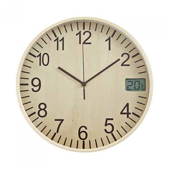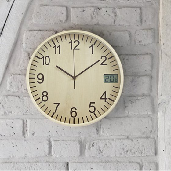 Wie zegt dat u moet kiezen tussen duurzaamheid en hoge technische normen? De HOUTEN RADIOGRAFISCHE WANDKLOK met de temperatuur weergave combineert het gebruik van hernieuwbare grondstoffen met de hoogste precisie tijd: De behuizing is gemaakt van echt grenen hout (cijferblad en achterkant van MDF) - en dankzij de radio-ontvanger, toont het de tijd altijd atoomklok precies. Datum en binnentemperatuur wordt weergegeven in 20-seconde uitwisseling op het grote ingebouwde digitale display 3-uur positie. Werkend op een AA-batterij (apart verkrijgbaar). Afmetingen: Ø ca. 29,5 cm, behuziing diepte ca. 4,5 cm. Slimme combinatie? Natuurlijk!