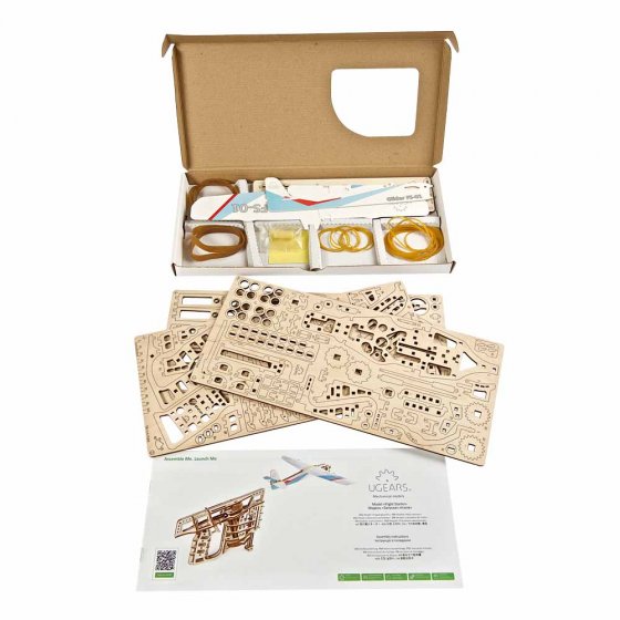 Met deze unieke vliegtuiglanceerder kunt u uw eigen modellen nauwkeurig de lucht in sturen. De set bevat een zweefvliegtuig, twee papieren vliegtuigjes en 198 hoogwaardige houten onderdelen waarmee u uw eigen vliegtuig kunt maken. Pas de vleugels en andere elementen aan om spannende vliegmanoeuvres uit te voeren, zoals loopings enz. De lanceerder wordt in elkaar gezet zonder lijm of speciaal gereedschap. Dankzij de gedetailleerde instructies is de montage een fluitje van een cent. Afmetingen (b x h x d): ca. 30 x 19 x 7 cm.