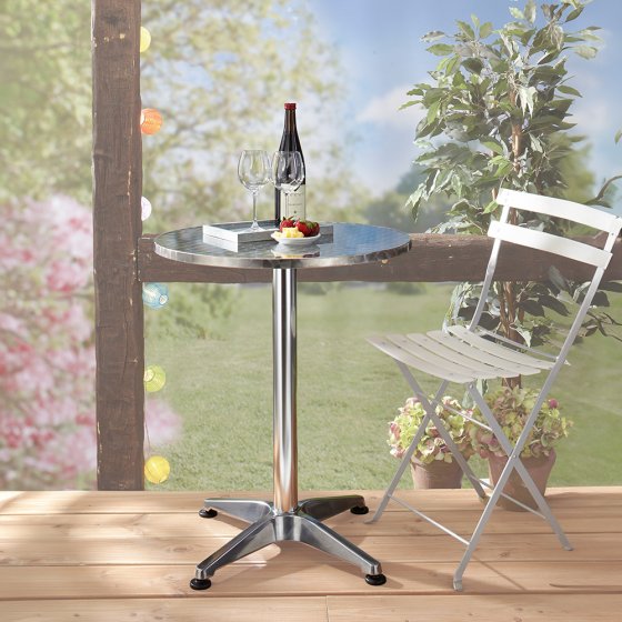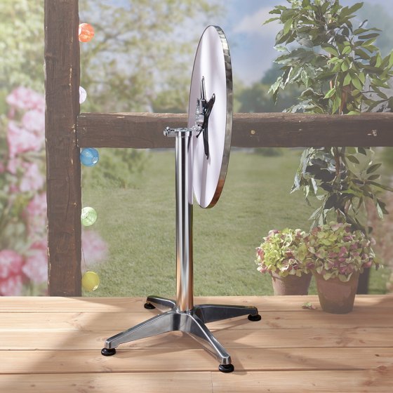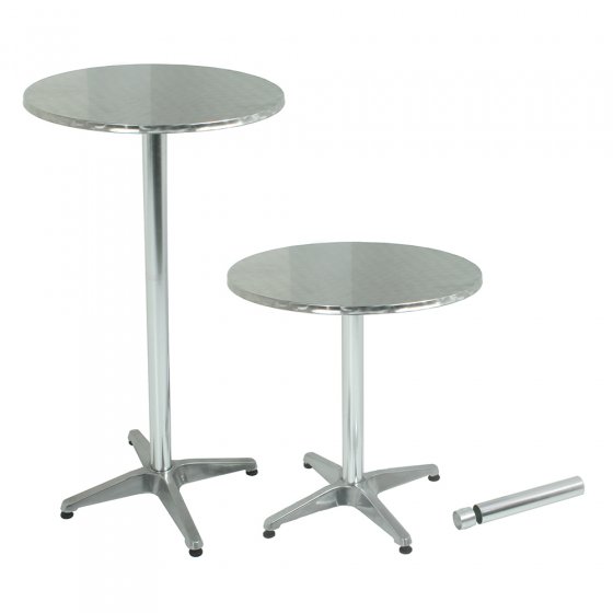 De klassieke statafel is het belangrijkste meubelstuk op elk soort feest: hij nodigt uit tot gezellig samen kletsen, biedt plaats aan glazen, snacks en asbakken en neemt, in tegenstelling tot een grote eettafel, nauwelijks ruimte in beslag. De IN HOOGTE VERSTELBARE STATAFEL heeft bovendien het voordeel van een variabele hoogteverstelling: door het verwijderen van een deel van de staander kan hij in een handomdraai worden veranderd van een statafel (hoogte 115 cm) in een salontafel (hoogte 70 cm). Het tafelblad is gemaakt van edelstaal (met mdf-kern). Het onderstel is gemaakt van aluminium. Diameter tafelblad: ca. 60 cm. Bied uw gasten een tafel om aan te staan of om omheen te zitten!