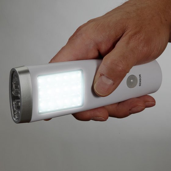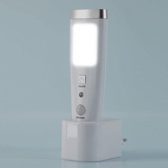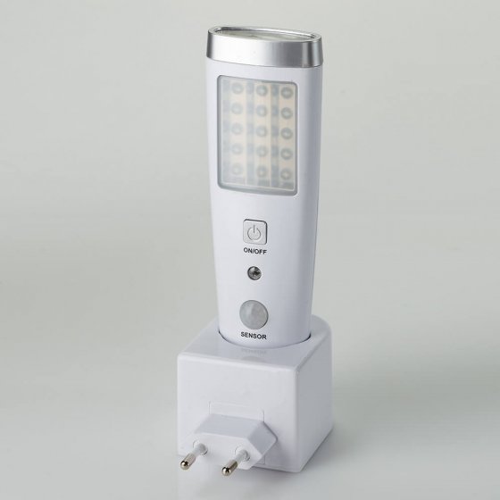 Zaklamp, lamp, noodverlichting of nachtlicht met bewegingssensor: dit praktische INDUCTIE-LED-CONTROLELAMPJE is het lichtende voorbeeld van veelzijdigheid. De geïntegreerde schemeringssensor schakelt de 15 leds automatisch in het donker in als de PIR-bewegingssensor een beweging tot 3 m afstand herkent, en na ca. 25 seconden weer uit. Of neem gewoon de lamp in de hand en onderbreek de stroomtoevoer. Werkt ook bij stroomstoring. Bovendien kun je via de schakelaar de 5 leds in de kop activeren of tussen beide lichtopties wisselen. Afmetingen (l x b x h): ca. 15 x 4 x 5 cm. Werkt op accu, draadloos en veilig op te laden via het stopcontact-laadstation (inductietechniek). Handig als oriënteringslicht, noodverlichting of zaklamp: deze lamp is ideaal in alle situaties.