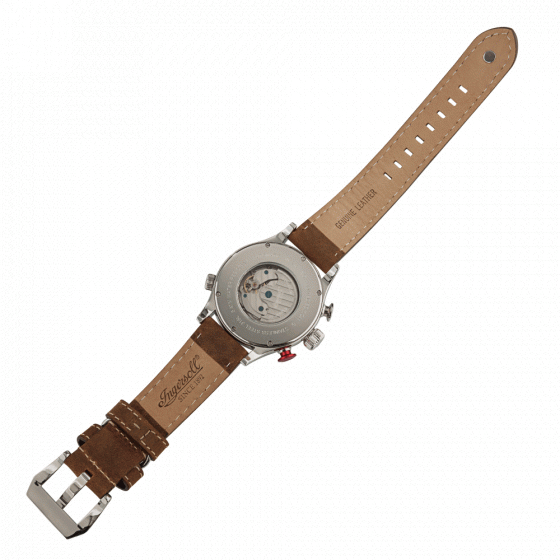 nubuck lederen band en roestvrij stalen gesp met Ingersoll-gravure. Een echte lust voor het oog - deze klok zal u veel vreugde geven.