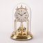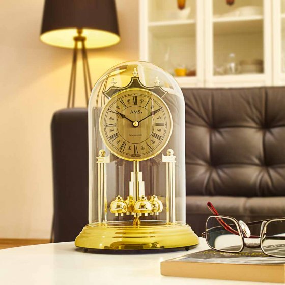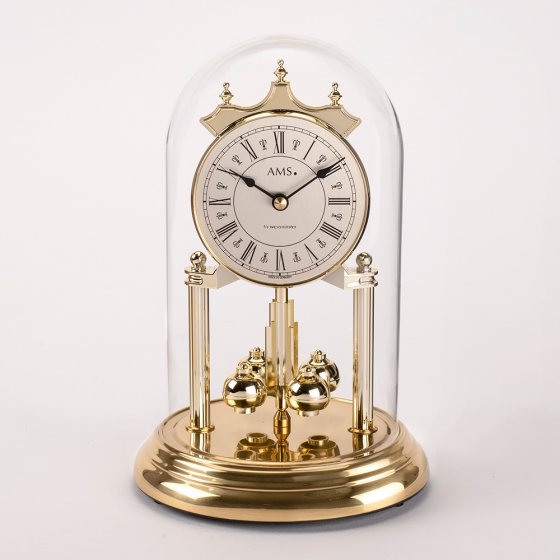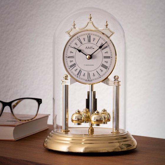 Deze JAARKLOK 'WESTMINSTER' verenigt alles waarin een goede pendule zich onderscheidt: een decoratieve look en de allure van een blikvanger, nauwkeurige tijdsaanduiding, prachtige slag. Elk kwartier klinkt er een deel van de beroemde Westminster-melodie, op het hele uur het gehele stuk inclusief het betreffende aantal klokslagen. Maar ook qua uiterlijk heeft deze klok het een en ander te bieden. Hij heeft niet alleen een goudkleurige wijzerplaat, maar ook een gepatenteerd quartz-draaislingeruurwerk. Houder van kunststof in messing-look, bel van kristalglas. Afmetingen: Ø ca. 14 cm, hoogte ca. 23 cm. Werkt op 2 AA-batterijen (afzonderlijk te bestellen). Zo iets moois verdient een prominente plaats op uw schoorsteenmantel of in uw wandkast!