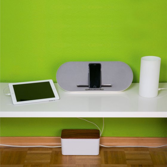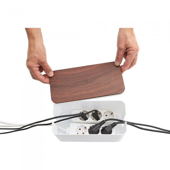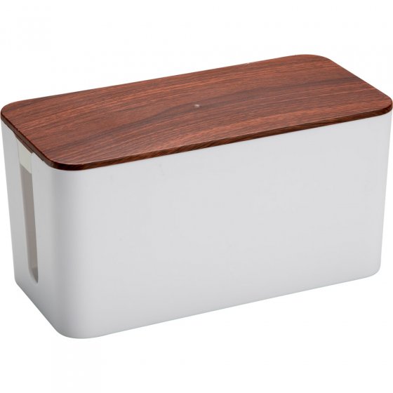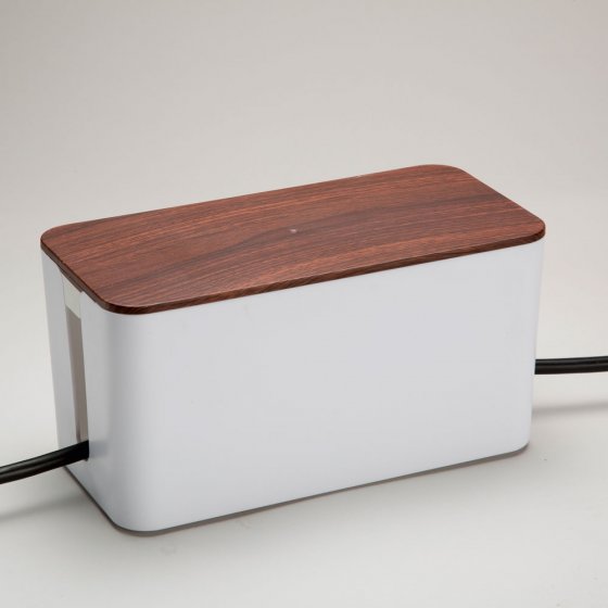 Het is natuurlijk het mooiste als alle snoeren en stekkerdozen van de TV, de audioset en de DVD-speler opgeborgen zijn in uw TV-meubel. Als dit niet mogelijk is, ruimt deze praktische KABEL-ORGANIZER op. Hij schept orde met alle korte en lange snoeren met stekker! Bovendien raken de verschillende snoeren niet meer in elkaar verstrikt, maar liggen ze gesorteerd naast elkaar in de stevige kist. Deze bak is heel eenvoudig te stofzuigen. Bijzonder mooi exemplaar met deksel in hout-look. Afm. (lxbxh): ca. 24x12x12 cm. Gewoonweg ideaal: zonder verbouwen en ook geschikt voor stekkerdozen met een kort snoer. In een handomdraai is uw woonkamer ontdaan van alle zichtbare snoeren!