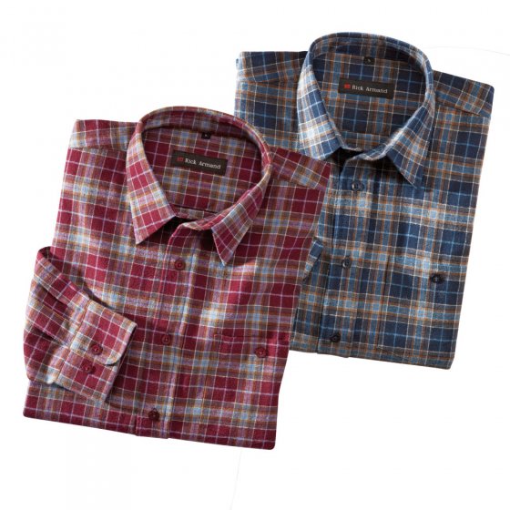 Combineer deze KATOEN FLANELLEN OVERHEMD DUBBELPAK met klassieke ruit in rood of blauw met spijkerbroek of corduroy broek, en uw casual look voor is perfect! De hoogwaardige, licht geruwd flanel kwaliteit houdt de warmte dicht bij het lichaam en biedt een uitstekende bescherming tegen de kou. Aangenaam zacht en comfortabel, wordt het gekenmerkt door unieke robuustheid en duurzaamheid. De uitstekende verwerking overtuigt: Kent kraag, borstzak met knoop, verstelbare 2-knops manchetten, comfort plooien in de rug, afgeronde zoom. 100% Katoen, wasbaar in de machine. 2 comfortabele klassiekers, die in geen Winter kast mogen ontbreken, voor een voordelige set prijs!