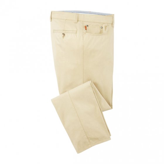 Deze KATOENEN CERA COOL-BROEK is ideaal voor warm weer, want men voelt zich er gewoon veel frisser in. Het geheim: de binnenkant in Cera Cool-uitvoering werkt verkoelend en houdt warmte uit de buurt van het lichaam. Daarbij blijft de stof van 98% katoen en 2% Elastan volledig ventilerend. Hij voelt zacht aan en is gemakkelijk in onderhoud. Het koeleffect is bovendien wasbestendig. Door het stretchaandeel in het weefsel en de comfortband kunt u zich in de broek heel comfortabel bewegen. Swing-pocketmodel met 2 achterzakken voorzien van knoop en een veiligheidszak. Een zomerbroek bij uitstek, in kleuren die gemakkelijk zijn te combineren.