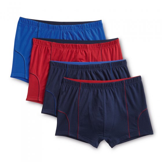 Bij deze KATOENEN RETROSHORT wordt mooie kwaliteit gecombineerd met een goede pasvorm: zo voelt men zich van vroeg tot laat prettig. De mix van 95% katoen en 5% elastan is prettig zacht in het dragen en past zich elastisch aan het lichaam aan: men kan zich in deze short heel comfortabel bewegen, want niets knelt of zit te strak. De band is aan de binnenkant extra zacht; de voorkant is dubbel verwerkt. De mooie kleuren, fijne paspels en contrasterende binnenkant van de band ronden het plaatje perfect af. Ideaal: de praktische set van 4, omdat men deze short zo graag draagt.