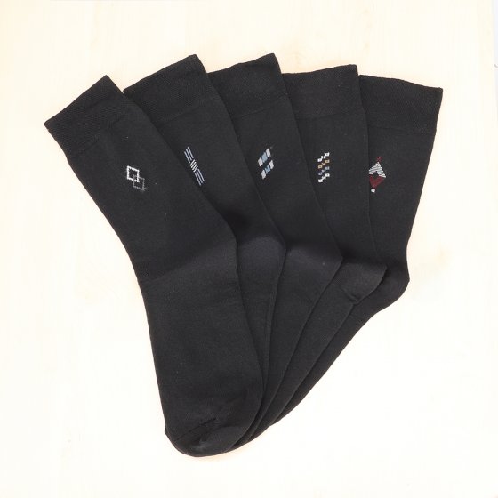 Hier profiteert u maar liefst drie keer! De elegante KATOENEN SOKKEN MET SCHACHTMOTIEF zijn vanwege de klassieke kleur met alles te combineren, zowel sportief, casual als iets chiquer. Het aangename materiaal van 70% katoen, 25% polyester en 5% elastan zit uitstekend om de voet en is gewoon machinewasbaar. Voordeel 3: de verschillende, subtiel ingezette motieven op de schacht, die de sokken heel bijzonder maken. Het hoge draagcomfort wordt afgerond door de hielkom en de elastische boord van piqué. Bestel nu de voordelige set van 5 paar!