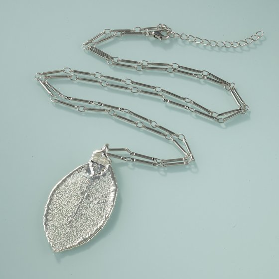 De roos wordt al altijd beschouwd als een teken van ware liefde en diepe vriendschap. De filigrane KETTING MET ECHT ROZENBLAADJE is een bijzonder cadeau dat uw gevoelens perfect uitdrukt. In een speciaal procedé wordt het bladweefsel van echte rozenblaadjes blootgelegd. Uiterst precies brengen de juwelenmakers vervolgens messing aan op de fijne vertakkingen van de bladnerven voordat ze vervolgens worden verzilverd of verguld. Zo worden prachtige unieke stukken vervaardigd! De bijzonder lichte en toch stevige hanger wordt door een delicaat oogje aan de bijpassende ketting geregen. Afmetingen hanger (l x b): ca. 5 x 3 cm; kettinglengte ca. 70 cm. Hanger en ketting 925-verzilverd of 999-verguld. Een individueel juweel - net zo uniek en betoverend als de persoon van wie u houdt!