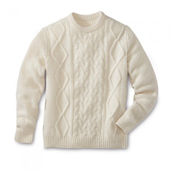 Deze KLASSIEKE TRUI MET RONDE HALS ziet er niet alleen prachtig uit: hij brengt degene die 'm draagt voorspoed en geluk! Want dat is wat er gezegd wordt over de kunstig gebreide motieven in Ierse stijl, die lang geleden zijn gecreëerd door de vissersvrouwen op de Aran-eilanden. De trui ziet er niet alleen heel bijzonder uit: het Italiaanse garen van 66% polyacryl, 29% wol en 5% polyester zorgt ervoor dat het materiaal aangenaam zacht en weldadig warm is. De chique kleur kleedt mooi af en past overal bij. Met elastische boord aan de mouwen en onderlangs voor een mooie pasvorm.
