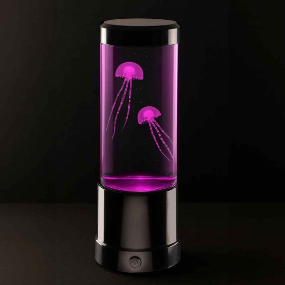 Creëer een magische sfeer met de KWALLENLAMP! Deze unieke lamp combineert de rustgevende schoonheid van twee zwevende kwallen met een betoverend lava-effect, waardoor een rustige, dynamische sfeer ontstaat. Perfect voor elke kamer, kantoor of speciale gelegenheid, van woonkamer tot feestkelder. Sluit het apparaat aan, druk op de knop en zie de kwal rustig op en neer bewegen. Met instelbare kleurselectie of kleurwisselfunctie. Afmetingen (h x Ø): ca. 25 x 11 cm. Dompel uzelf onder in een wereld van ontspanning en geniet van de rust van de oceaan.
