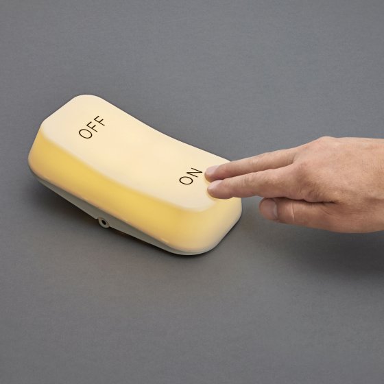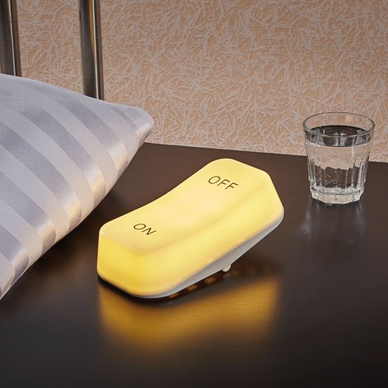 Wat is het vervelend als men ‘s nachts de lichtschakelaar zoekt – en daarbij de wekker of het waterglas omstoot ... Met de WIPSCHAKELAAR-LAMP is dat verleden tijd: de schakelaar – die tegelijkertijd de lamp is – is zo groot als een brood, en dankzij de tuimelsensor is zacht aanraken voldoende. Natuurlijk is de wipschakelaar-lamp niet alleen in de slaapkamer heel mooi, maar ook op een sidetable. Batterijvoeding (3 AA-batterijen, afzonderlijk te bestellen). Afm. (bxhxd): ca. 20 x 8 x 10 cm. Hiermee vindt u in het donker snel verlichting!