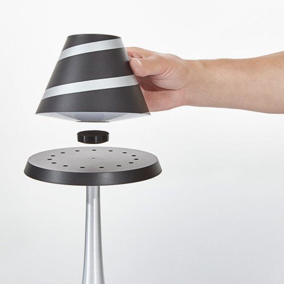 "Mais l’abat-jour flotte ! Comment est-ce possible ?" Cette question vous sera désormais souvent posée, car la LAMPE ANTI-GRAVITÉ fascine et interroge par sa magie. Et vous seul en connaissez le secret : la douille ne recèle pas uniquement 24 LED puissantes – 15 en haut et 9 en bas –, mais aussi un électroaimant. La lampe produit un champ magnétique puissant sur lequel se tient un autre aimant. Ce dernier fait léviter l’abat-jour noir-argenté de manière impressionnante 2 cm au-dessus du pied de lampe. L’interrupteur tactile du pied permet de choisir entre 3 modes lumineux (haut et bas / haut / bas). Alimentation secteur 230 V. Dimensions (Ø x H) : 19 x 42 cm, poids : env. 1 kg. Un spectacle incroyable !