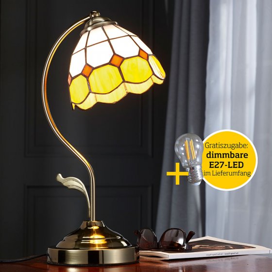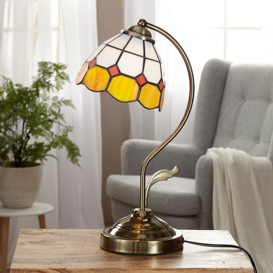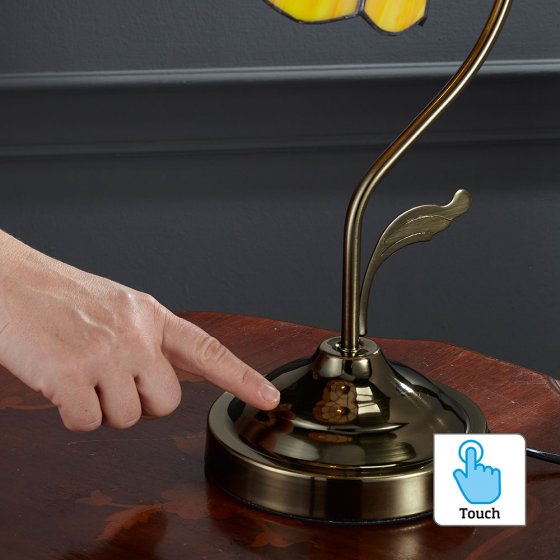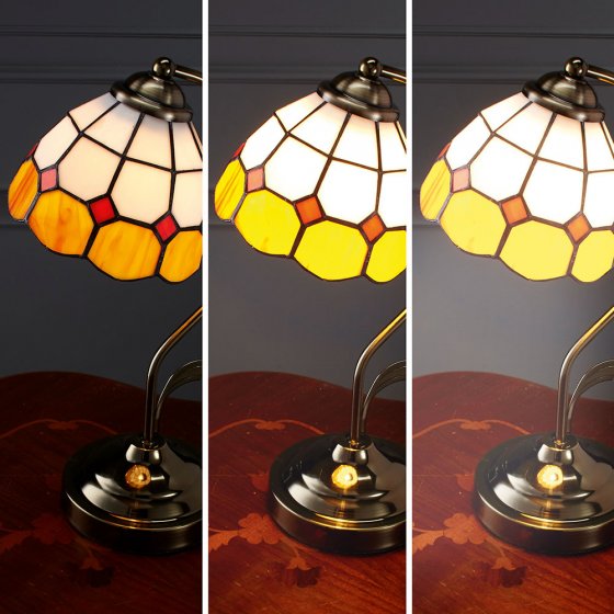 Depuis le 19e siècle, les lampes Tiffany, qui doivent leur nom à l'artisan verrier américain Louis Comfort Tiffany, comptent de nombreux fans dans le monde entier. La LAMPE DE TABLE STYLE TIFFANY allie l'aspect classique de ces lampes, avec abat-jour en mosaïque de verre, à la technologie moderne : il suffit d'effleurer légèrement le pied de lampe pour allumer ou éteindre celle-ci, et pour choisir l'un des trois niveaux de luminosité. Même éteinte, la lampe est incontestablement un vrai bijou, avec ses 36 éléments de verre soigneusement assemblés à la main. Dimensions (Ø x H) : env. 16 x 45 cm. Alimentation secteur 230 V. Une lampe classique aux multiples facettes qui va en tout temps et en tout lieu.