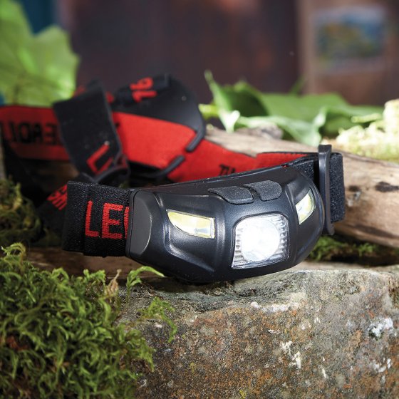Cette LAMPE FRONTALE À LED/COB chasse l’obscurite en un tour de main ! La LED au centre dispose de deux niveaux de luminosite et d’une fonction stroboscopique. 2 lampes COB servent de source lumineuse supplementaire ou d’alternative à la LED. Afin d‘illuminer le sol juste devant vous ou un bricolage sur la table, l‘inclinaison de la lampe est reglable en continu vers l’avant (inclinable jusqu’à 45°). Ideale pour toutes les activites dans le noir ! Matériau : ABS (boîtier), nylon (bandeaux), Dimensions (larg. x haut. x prof.) : 7,2 x 3,5 x 3,5 cm, Poids : 60 g. Fonctionne à l’aide de 2 micro-piles (disponibles séparément).
