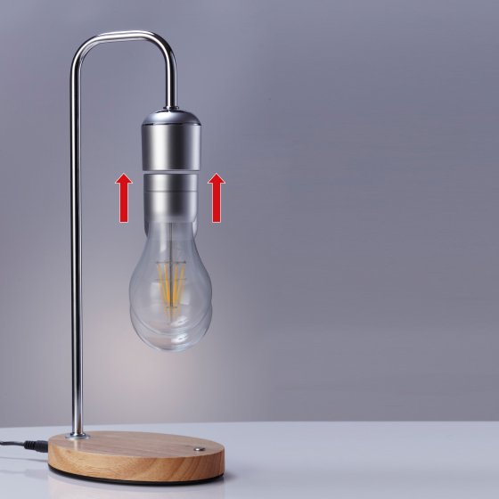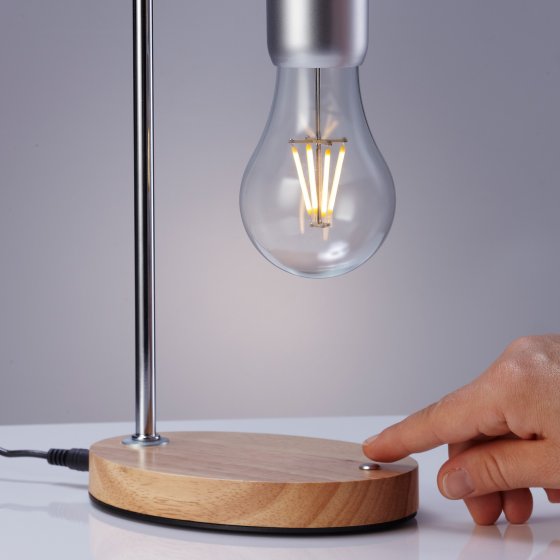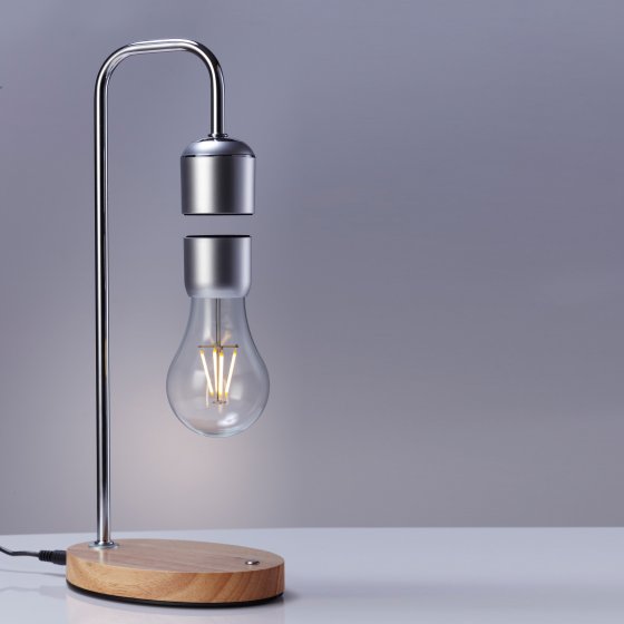 La lévitation magnétique (lat. levitas = légèreté) se base sur des principes physiques. Des forces électriques et magnétiques génèrent un champ de tension stable qui compense la force de gravité et maintient l'ampoule en état de lévitation sans contact mécanique, apparemment insensible à l'attraction terrestre.