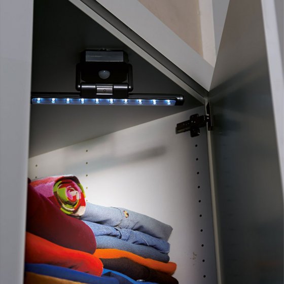 Ne craignez plus de descendre dans votre cave sombre : avec notre LAMPE LED À CAPTEUR DE LUMIÈRE, éclairez avec précision là où vous en avez le plus besoin ! Son plus : cette lampe pratique n’a pas de prise. Vous pouvez donc éclairer aussi bien le coin le plus reculé de votre garage que votre cellier ou l’intérieur de votre dressing ! Cette rampe lumineuse à 10 LED claires s’oriente dans toutes les positions. Il vous suffit de la fixer à l’aide du patin adhésif ou de la visser (les 2 sont inclus) là où vous le souhaitez. Dim. env. 30 x 13 x 4 cm, fonctionne avec 3 piles AA (vendues séparément). Convient également à l’éclairage d’une galerie pour mettre en valeur vos tableaux. S’allume avec le bouton Marche/Arrêt ou avec le capteur de lumière : on ne peut plus pratique !