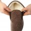 “Guter Sitz durch hohe Fersen-Kappe. Leichtes Anziehen. Hat sich be- währt: Hausschuhe eine Nummer größer als normal wählen (da gibt es auch bei stärkeren Strümpfen keine Anzieh-Probleme).”
