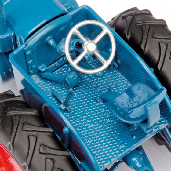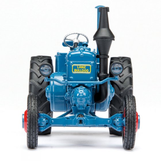 Il est à aujourd’hui le symbole agricole d’une Allemagne d’après-guerre en plein essor et le moteur du boom économique général. Ce LANZ ACKERLUFT BULLDOG, construit entre 1945 et 1955 à Mannheim, bénéficiait d’un moteur de 45 chevaux, d’un moteur monocylindre à 2 temps caractéristique avec sa « boule chaude » sur le devant, ainsi que d’une cylindrée mythique de 10,3 litres. Le préchauffage à l’aide d’une lampe à souder et l’allumage prenaient du temps et de l’énergie. Ce modèle réduit en zinc moulé sous pression à l’échelle 1:32 et riche en détails est laqué à la main et doté de pièces fabriquées par photochimie. Roues avant directrices sur essieu oscillant. Dim. env. 10,5 x 6 x 7,5 cm. Dans une vitrine ou pour offrir, ce tracteur culte séduira les amateurs d’objets rétro et d’éléments de décoration originaux.