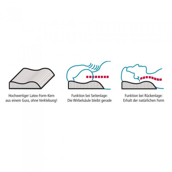 Veel mensen klagen erover dat ze na het slapen pijn in hun nek hebben. Vaak is het verkeerde kussen de oorzaak hiervan. Een juist gekozen hoofdkussen bepaalt het verschil tussen een goed of een slecht begin van de dag – met het LATEX-NEKSTEUN-KUSSEN ligt u precies goed! Het hoogwaardige materiaal onderscheidt zich door de hoge vormbestendigheid