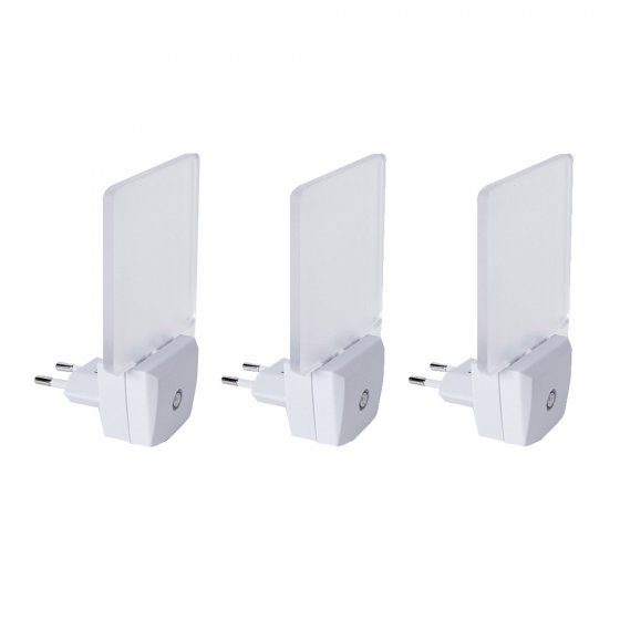 Wie er ’s-nachts vaak uit moet, laat meestal het grote licht uit – want je kunt toch bij zoveel licht met samengeknepen ogen niets zien. Het LED-NACHTLAMPJE in set van 3 zorgt ervoor dat u niet in het duister hoeft te tasten: Ieder nachtlampje bestaat uit een elegant glasplaatje, zo klein als een vierkant onderzettertje, met een adapterstekker die direct in het stopcontact wordt gestoken. In de stekker geïntegreerd zit een sensor – die zodra er een beweging wordt waargenomen, het glasplaatje laat illumineren. Het zachte, blauwe licht is voldoende om stap voor stap veilig uw weg te verlichten. Omdat er in iedere lamp slechts een ledlampje brandt, is het stroomverbruik van de nachtwachters extreem gering. Afm.: ca. 12 x 8 cm. En? Gaat er een lampje bij u branden?