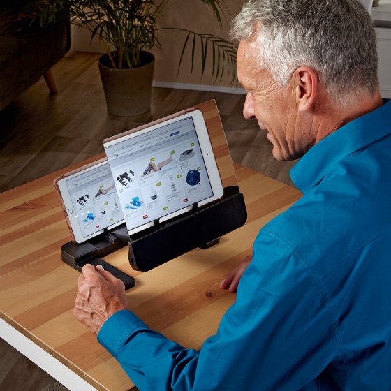 Volledige boekpagina's en tijdschriften vergroten: de snoerloze tafelloep vergroot en verlicht probleemloos volledige A4-pagina's zonder het leesmateriaal of de loep te verplaatsen. 13 dimbare leds simuleren wit daglicht. Kleuren en contrasten worden optimaal weergegeven en de ogen worden beschermd tijdens het lezen. Ook ideaal voor schrijven, handwerken, naaien of het controleren van munten en postzegels. Met flexibele hals en 360° draaibare behuizing. Afmetingen glazen lens (l x b): ca. 25 x 20 cm.