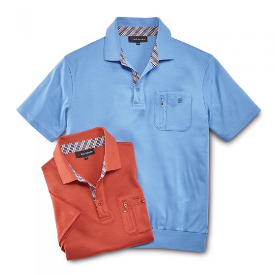 Er zijn veel goede redenen, waarom men dit INTERLOCKSHIRT MET CONTRASTEN graag draagt. Zoals het geruite beleg bij de kraag en bij de knopenlijst, dat meteen in het oog springt en het plaatje verlevendigt. En er is de fraaie interlockkwaliteit van 65% polyester en 35% katoen: deze ligt niet alleen zacht en comfortabel op de huid, hij is ook uitstekend wasbaar en zeer vormvast. Heel handig is de borstzak met knoop en rits. De elastische heupband geeft de mooie pasvorm. Dit ’Rick Armand’ shirt met korte mouwen is te bestellen in twee mooie kleuren en ook als set voor een voordeelprijs.