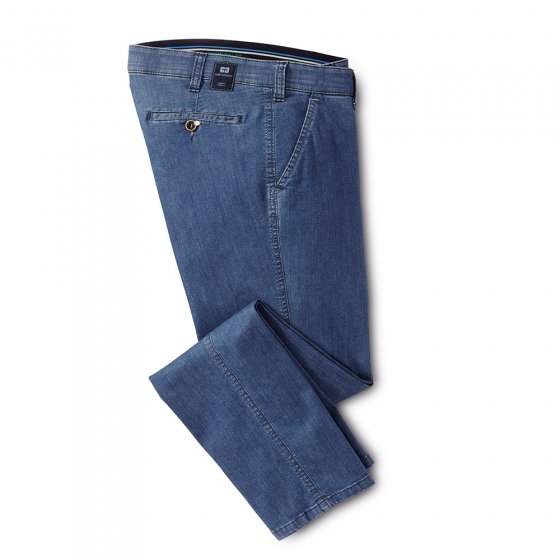 Klinkt als een droom, maar is helemaal waar: bij deze LICHTE COOLMAX JEANS is een ’klimaat CoolMax jeans is een ’airco’ ingebouwd. Dit komt door de Coolmax® microvezel in de stof: deze geeft deze jeans een koele touch en voert vocht veel sneller af van de huid. Het draagcomfort is uniek; u voelt zich droog, prettig en fris. Bovendien is het high stretch-denim van 60% katoen, 37% polyester en 3% elastan uiterst elastisch, vormvast en extreem kreukarm. Ook na lange autoritten ziet u er in de broek tiptop uit. De jeans heeft steekzakken en achterzakken met knoop; helemaal perfect is de comfortband (ca. 4 cm elastisch) met overhemdstopper.