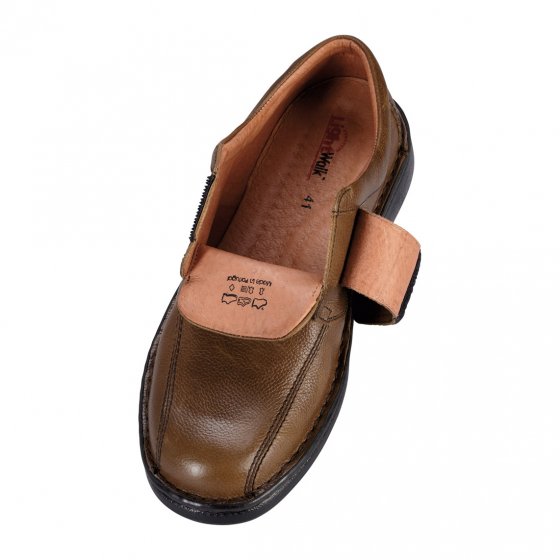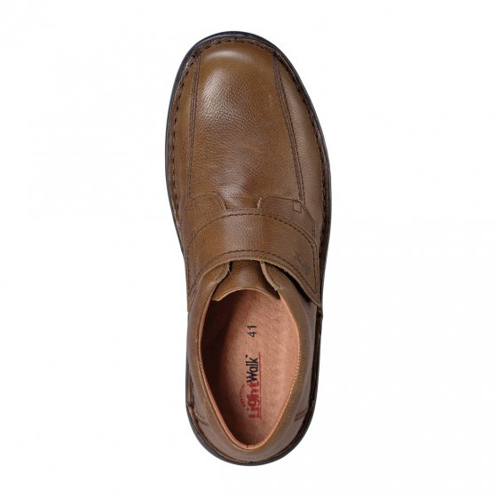 De LIGHTWALK-KLITTENBANDINSTAPPERS zijn voorzien van een innovatief dempingselement, dat strategisch handig bij de hiel van de binnenzool geplaatst is. Want precies daar ontlast het de voet op perfecte wijze en maakt het de schoen van robuust rundleer zo bijzonder comfortabel. Optisch is de schoen een allrounder zoals men die graag ziet: de subtiele nerftekening, het sportieve model en de veelzijdig te combineren kleur maken hem goed te combineren. Dankzij de klittenbandsluiting is de schoen gemakkelijk aan te trekken en is de pasvorm perfect aan te passen. De randen zijn zacht verdikt; de doorgestikte zool van kunststof is zeer buigbaar en antislip. Bovenwerk en voering zijn van echt leer.